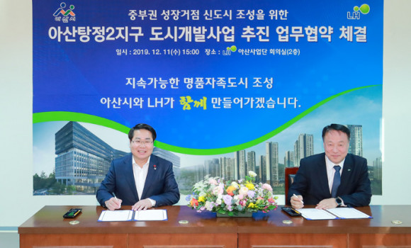¾Æ»ê½Ã(½ÃÀå ¿À¼¼Çö)¿Í Çѱ¹ÅäÁöÁÖÅðø»ç(»çÀå º¯Ã¢Èì)´Â 12¿ù 11ÀÏ ÁßºÎ±Ç ¼ºÀå°ÅÁ¡ ½Åµµ½Ã Á¶¼ºÀ» À§ÇÑ ¾÷¹«Çù¾à(MOU)À» ü°áÇß´Ù.