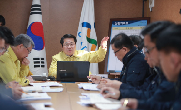 ¾Æ»ê½Ã(½ÃÀå ¿À¼¼Çö)´Â 1¿ù 2ÀÏ ¿ÀÀü 10½Ã ¿ìÇÑ ±³¹ÎµéÀÇ ÀӽûýȰ½Ã¼³ÀÌ ÀÖ´Â °æÂû ÀÎÀç°³¹ß¿ø Àα٠Ãʻ絿 ÇöÀå ½ÃÀå½Ç¿¡¼ ÀÏÀÏ ´ëÃ¥»óȲº¸°íȸÀǸ¦ ¿°í ½ÅÁ¾ Äڷγª¹ÙÀÌ·¯½º¿Í °ü·ÃÇØ öÀúÇÑ ¾ÈÀü °ü¸®¸¦ ´ÙÁüÇß´Ù.