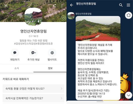 »Ó¸¸ ¾Æ´Ï¶ó ±âÁ¸¿¡ ¿î¿µÇϰí ÀÖ´Â ÀνºÅ¸±×·¥(https://www.instagram.com/yeonginsan/) Ȱ¼ºÈ·Î īī¿Àä³Î ºñ»ç¿ëÀÚ¿¡°Ô ÀνºÅ¸±×·¥À» ÅëÇÑ È«º¸¸¦ ½Ç½ÃÇÔ¿¡ µû¶ó º¸´Ù ¸¹Àº À̵鿡°Ô »ê¸²È޾翡 ´ëÇÑ ±âȸ¸¦ Á¦°øÇÒ °ÍÀ¸·Î ±â´ëµÈ´Ù.
