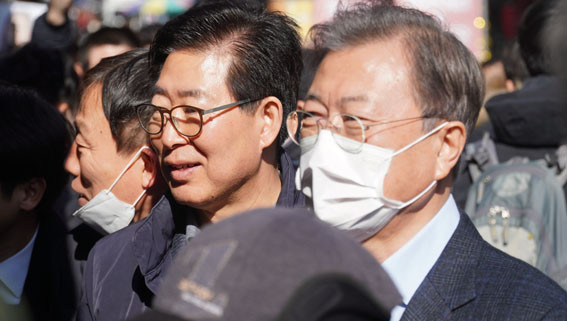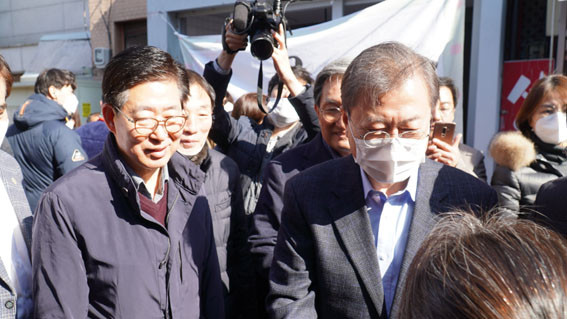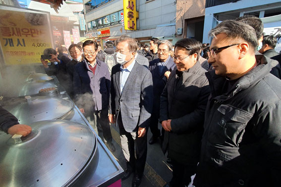 ÁֹΠ°£´ãȸ¿¡ ÀÌ¾î ¹® ´ëÅë·ÉÀº ¾ç Áö»ç¿Í ÇÔ²² ¿Â¾ç¿ÂõÀüÅë½ÃÀåÀ¸·Î À̵¿, ½ÃÀåÀ» µ¹¾Æº¸¸ç »óÀεéÀ» °Ý·ÁÇß´Ù.