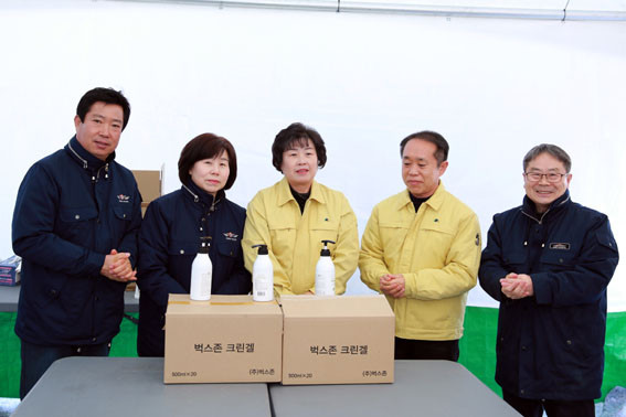 ƯÈ÷ ¼Õ ¼Òµ¶Á¦¿Í ¸¶½ºÅ©, ¶±, °úÀÏ, À½·á, ±è µî À§»ý¿ëǰ°ú Áö¿ø¹°Ç°À» ¾Æ»ê½ÃÀÇȸ·Î ÈÄ¿øÇÏ¸é¼ Ãʻ絿 ÀαÙÁֹΠ¹× ÇöÀå ºñ»ó±Ù¹«Àڵ鿡°Ô Ãæ³²½Ã±ºÀÇȸÀÇ ¿ÂÁ¤µµ ÇÔ²² Àü´ÞµÆ´Ù.