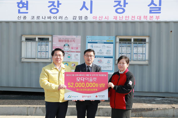 ÈÄ¿ø¹°Ç°Àº ¡ãÀ°°èÇùȸ ¾Æ»êÁöºÎ, »ï°èÅÁ 600°³ ¡ã¸ð´Ù¾Æ¿ï·¿ õ¾È¾Æ»êÁ¡, ¸¶½ºÅ© 1¸¸Àå ¹× ¿©¼ºÀ§»ý¿ëǰ 2¸¸°³ ¡ã¼¿ï¿ìÀ¯ Çùµ¿Á¶ÇÕ(´ëÇ¥ ¹®Áø¼·)°ú ¾Æ»ê¿Âõ°í°´¼¾ÅÍ(´ëÇ¥ ±èÈ«±¹), ¸ê±Õ¿ìÀ¯ 3õ600°³¸¦ ÈÄ¿øÇß´Ù.