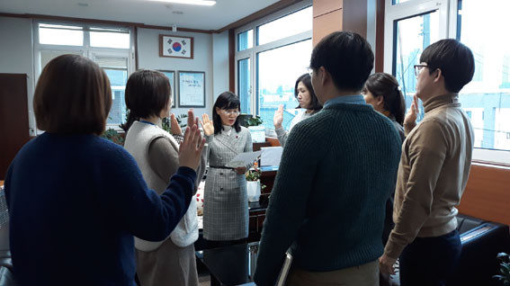 ´õ ³ª¾Æ°¡ »ç¹«½Ç »Ó¸¸ ¾Æ´Ï¶ó °¡Á¤¿¡¼µµ ģȯ°æ »ýȰÀ» ½ÇõÇϱâ À§ÇØ Àå¹Ù±¸´Ï »ç¿ë, Ä¿ÇǼó ¸Ó±×ÄÅ ÁöÂüÇϱâ, »ç¹«½Ç ³» °³ÀÎÄÅ »ç¿ëÇϱ⠵î 6°¡Áö »çÇ×À» ½Çõ ¼±¾ðÇϰí Á÷¿øµéÀÌ 1ȸ¿ëǰ ÁÙÀ̱⿡ ¾ÕÀå¼±â·Î ´ÙÁüÇß´Ù.