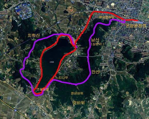 ÆòÁö¸¦ °È´Â °ÍÀÌ ´ÜÁ¶·Î¿î »ç¶÷µé, ¿îµ¿À¸·Î ¼ºÃë°¨À» ´À³¢°í ½ÍÀº »ç¶÷µéÀº ¿Â¾ç¿Âõ¿ª¿¡¼ »êÃ¥·Î¸¦ µû¶ó °¡´Ù°¡ ¿Â¾ç¹®È¿ø µÚ ¿Â¾ç³²»ê ÆÈ°¢Á¤À» °ÅÃÄ ´É¼±À» Ÿ°í »ó¿î°¢±îÁö °£ ÈÄ¿¡ ½ÅÁ¤È£·Î ÇÏ»êÇÏ¸é µÈ´Ù. ÀÌ¿Õ ¿Â¾ç³²»ê¿¡ ¿À¸¥ ±è¿¡ ¾à 3.5km ´ÞÇÏ´Â Àüü Á¾ÁÖ¸¦ Áñ±â·Á¸é µî»ê·Î¸¦ µû¶ó¼ ³¡±îÁö °¡¼ ½ÅÁ¤È£ ¼öº¯±æ·Î ³»·Á ¼¸é µÈ´Ù. ÀÌ·² °æ¿ì¿¡´Â ³²»ê ³¡ºÎºÐ õ³â¹ÙÀ§ °¥¸²±æ¿¡¼ ¿ìÃøÀ¸·Î ²ª¾î¼ ½ÅÁ¤È£ ¹æÇâÀ¸·Î ÇÏ»êÇÏ¸é µÈ´Ù.