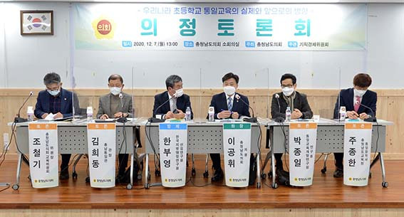 À̰øÈÖ ÀÇ¿øÀÌ ÁÂÀåÀ» ¸Ã¾Ò°í, ÇѺοµ ¼±ÀÓ¿¬±¸¿ø(Çѱ¹Áö¹æÇàÁ¤¿¬±¸¿ø)ÀÌ ¹ßÁ¦¸¦ ¸Ã¾ÒÀ¸¸ç, ¹ÚÁ¾ÀÏ ¿¬±¸¿ø(ÅëÀϱ³À°°³¹ß¿¬±¸¿ø)°ú ±èÈñµ¿ °üÀå(Ãæ³²ÅëÀϰü), ÁÖÁ¾ÇÑ ÀåÇлç(ÃæÃ»³²µµ±³À°Ã»), Á¶Ã¶±â À§¿øÀå(Ãæ³²µµÀÇȸ ±³À°À§¿øÈ¸)ÀÌ ÁöÁ¤Åä·ÐÀÚ·Î ³ª¼¹´Ù.