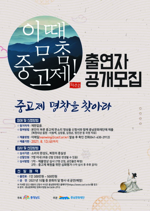 ¡®À̶§¸¶Âü Áß°íÁ¦! ½ÃÁð2¡¯ Ã⿬ÀÚ °ø°³¸ðÁýÀº ³ªÀÌ¡¤±¹Àû »ó°ü¾øÀÌ ´©±¸³ª Âü°¡ °¡´ÉÇϸç, À̵¿¹é¡¤±èâ¿ë µî °ú°Å Áß°íÁ¦ÀÇ ²ÉÀ» ÇÇ¿ü´ø ¸íâµéÀÇ ¼Ò¸®¸¦ ÀçÇöÇÏ´Â ¿µ»óÀ» Ãæ³²¹®ÈÀç´ÜÀ¸·Î º¸³»¸é ½É»ç¸¦ ÅëÇØ Ã⿬ÀÚ¸¦ ¼±¹ßÇÒ °èȹÀÌ´Ù.