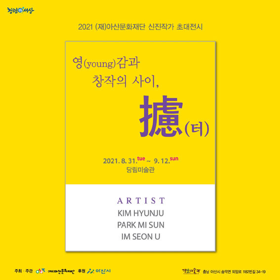 | | ¨Ï ¿Â¾ç½Å¹® | | (Àç)¾Æ»ê¹®ÈÀç´ÜÀº ¿À´Â 8¿ù 31ÀϺÎÅÍ 9¿ù 12ÀϱîÁö ´ç¸²¹Ì¼ú°ü¿¡¼ ¡®2021³â ½ÅÁøÀÛ°¡ ÃÊ´ëÀü½Ã <¿µ(young)°¨°ú âÀÛÀÇ »çÀÌ ÷Ì(ÅÍ)>¡¯¸¦ ÁøÇàÇÑ´Ù°í ¹àÇû´Ù.