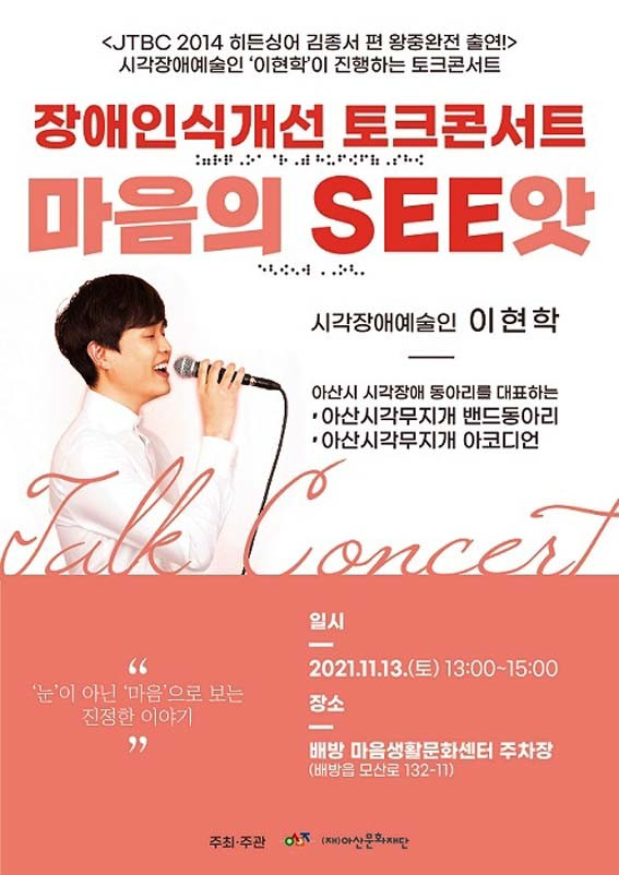 ¡®Àå¾Ö ÀÎ½Ä °³¼± ÅäÅ© ÄܼƮ-¸¶À½ÀÇ SEE¾Ñ¡¯Àº ¡®´«ÀÌ ¾Æ´Ñ ¸¶À½À¸·Î º¸´Â ¼¼»ó¡¯À» ÁÖÁ¦·Î ¡®2014 JTBC È÷µç½Ì¾î ¿ÕÁß¿ÕÀü¡¯¿¡ Ãâ¿¬ÇØ ¸¹Àº ÈÁ¦¸¦ ¸ðÀº ½Ã°¢Àå¾Ö ¿¹¼úÀÎ ÀÌÇöÇÐÀÇ ÅäÅ© ÄܼƮ¿Í ½Ã°¢Àå¾Ö µ¿¾Æ¸® ¾Æ»ê ½Ã°¢ ¹«Áö°³ ¹êµå¡¤¾ÆÄÚµð¾ðÀÇ ÃÊû°ø¿¬À» ÁøÇàÇÑ´Ù.