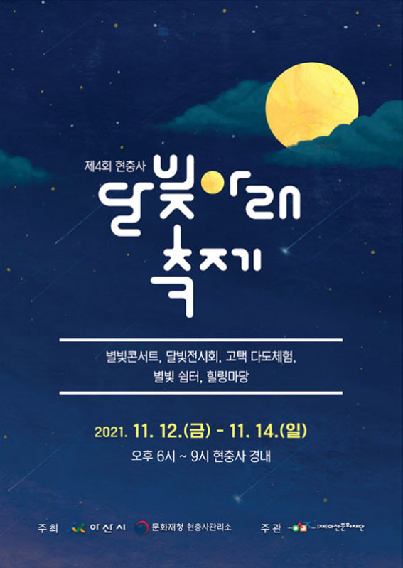 ¾Æ»ê½Ã¿Í ¹®ÈÀçû ÇöÃæ»ç°ü¸®¼Ò°¡ ÁÖÃÖÇÏ°í ¾Æ»ê¹®ÈÀç´ÜÀÌ ÁÖ°üÇÏ´Â ¡®Á¦4ȸ ÇöÃæ»ç ´Þºû ¾Æ·¡ ÃàÁ¦¡¯(ÀÌÇÏ, ´Þºû ¾Æ·¡ ÃàÁ¦)°¡ ¿À´Â 11¿ù 12ÀϺÎÅÍ 14ÀϱîÁö ¸ÅÀÏ ¿ÀÈÄ 6½ÃºÎÅÍ 9½Ã±îÁö 3Àϰ£ °³ÃֵȴÙ.