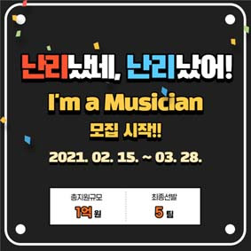 ¡¸I¡¯m a Musician¡¹Àº ÃÑ Áö¿ø±Ô¸ð ¾à 1¾ï ¿ø »ó´çÀÇ Áö¿ª ¹ÂÁö¼Ç ÅëÇÕÁö¿ø »ç¾÷À¸·Î, Áö¿ª ¹ÂÁö¼ÇÀ» ¹ß±¼ÇØ À½¹ÝÁ¦ÀÛ¡¤¹ß¸Å ¹× À¯Åë, ¶óÀ̺꿵»ó Á¦ÀÛ, ÀúÀÛ±Ç µî·Ï, ¼î ÄÉÀ̽º °ø¿¬, È«º¸¸¶ÄÉÆÃ±îÁö ¿ø½ºÅéÀ¸·Î Áö¿øÇÑ´Ù.
