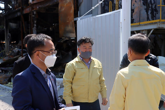 ¿À À§¿øÀåÀº À̳¯ Ãæ³²µµ¡¤³í»ê½Ã °ü°èÀÚ¿Í ¸¶À» ´ëÇ¥, °øÀå °ü°èÀÚ µî°ú ÇöÀå ÇÇÇØ»óȲÀ» ûÃëÇÏ°í ºÐÁø°ú À¯ÇØÈÇй°Áú Åä¾ç ¿À¿°»óȲÀ» Á¡°ËÇÏ¸ç ´ëÃ¥À» ³íÀÇÇß´Ù.