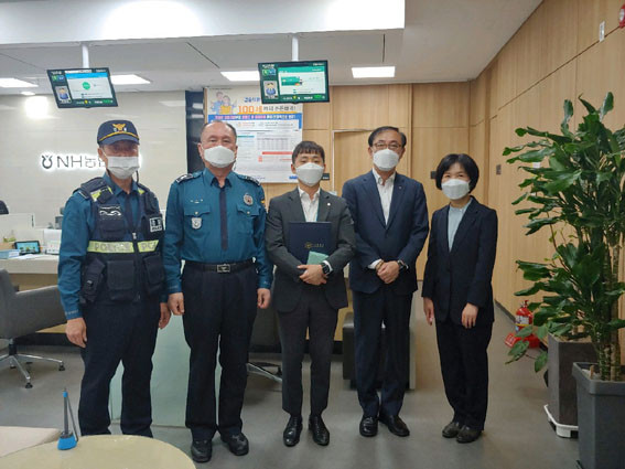 ÀÌ¿¡ ¾Æ»ê°æÂû¼´Â 4¿ù 26ÀÏ NH³óÇùÀºÇà ¾Æ»ê½ÃûÃâÀå¼Ò¸¦ ¹æ¹®ÇØ º¸À̽ºÇÇ½Ì »ç±â¹üÁË ÇÇÇØ¿¹¹æ¿¡ ±â¿©ÇÑ °ø·Î·Î ´ã´çÁ÷¿ø¿¡°Ô °¨»çÀåÀ» Àü´ÞÇß´Ù.