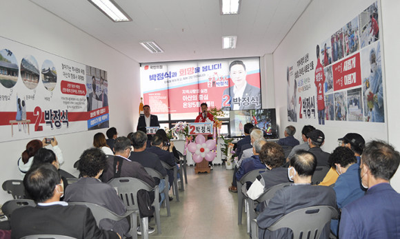 ¿À´Â 6¿ù 1ÀÏ ½Ç½ÃµÇ´Â Á¦8ȸ Àü±¹µ¿½ÃÁö¹æ¼±°Å¿¡¼ ÃæÃ»³²µµÀÇ¿ø µµÀü¿¡ ³ª¼´Â ±¹¹ÎÀÇÈû ¼Ò¼Ó ¹ÚÁ¤½Ä Èĺ¸ÀÇ ¼±°Å»ç¹«¼Ò °³¼Ò½ÄÀÌ Áö³ 5¿ù 17ÀÏ ¿ÀÈÄ 4½Ã ¼ºÈ²¸®¿¡ ¿·È´Ù,