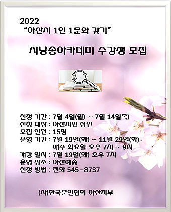 ½Ã³¶¼Û ¾ÆÄ«µ¥¹Ì´Â ¾Æ»ê¹®Çù ÁÖÃÖ¡¤ÁÖ°üÀ¸·Î ÀÌ·ç¾îÁö¸ç ½Åû¹®ÀÇ´Â ¾Æ»ê¿¹ÃÑ (041) 545-8737À¸·Î Çϸé ÀÚ¼¼ÇÏ°Ô ¾È³» ¹ÞÀ» ¼ö ÀÖ´Ù.