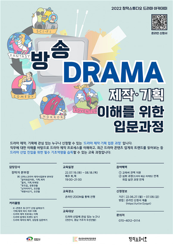 Ãæ³²Á¤º¸¹®È»ê¾÷ÁøÈï¿ø(¿øÀå ±èâ¼ö, ÀÌÇÏ ÁøÈï¿ø)ÀÌ ¿î¿µÇϴ õ¾È½Ã âÀÛ½ºÆ©µð¿À¿¡¼ ¹æ¼Û µå¶ó¸¶ Á¦ÀÛ ¹× ±âȹ¿¡ °ü½É ÀÖ´Â Ãæ³²Áö¿ª âÀÛÀÚ¿Í Áö¿ª ½Ã¹ÎÀ» À§ÇØ ¿À´Â 7¿ù 19ÀÏ¿¡ ¡®¹æ¼Û µå¶ó¸¶ Á¦ÀÛ¡¤±âȹ ÀÌÇØ¸¦ À§ÇÑ ÀÔ¹® °úÁ¤¡¯À» °³¼³ÇÑ´Ù.