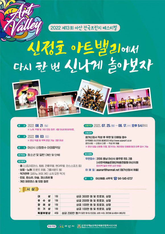 Âü°¡½ÅûÀº Çѱ¹¿¹ÃÑ ¾Æ»êÁöȸ ȨÆäÀÌÁö(http://asanart.co.kr/)¿¡¼ ½Åû¼¸¦ ³»·Á¹Þ¾Æ ¿À´Â 17ÀÏ ¿ÀÈÄ 5½Ã±îÁö ¿ìÆí(Ãæ³² ¾Æ»ê½Ã Ãæ¹«·Î 150, 2Ãþ) ¶Ç´Â À̸ÞÀÏ(asanart@hanmail.net)·Î Á¢¼öÇÏ¸é µÈ´Ù. ¹®ÀÇ´Â (»ç)Çѱ¹¿¹¼ú¹®È´ÜüÃÑ¿¬ÇÕȸ ¾Æ»êÁöȸ »ç¹«±¹(041-545-8737)À¸·Î ÇÏ¸é µÈ´Ù.