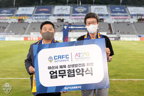Ãæ³²¾Æ»êFC ÀüÇýÀÚ ´ëÇ¥ÀÌ»ç´Â ¡°¿ì¸® Ãæ³²¾Æ»êÇÁ·ÎÃ౸´ÜÀº ½Ã¹Î ±¸´ÜÀ¸·Î½á ¸¶¶¥È÷ Áö¿ª»çȸ¹ßÀü¿¡ ¾ÕÀå¼¾ß ÇÑ´Ù°í »ý°¢ÇÑ´Ù. À̹ø Çù¾àÀ» ÅëÇØ Àå¾ÖÀÎüÀ° Ȱ¼ºÈ¿Í Àå¾ÖüÀ°Àε鿡°Ô ´õ ¸¹Àº ÇýÅÃÀ» µå¸± ¼ö ÀÖµµ·Ï ¾Æ»ê½ÃÀå¾ÖÀÎüÀ°È¸¿Í Çù·ÂÇØ ³ª°¡°Ú´Ù¡±¶ó°í È´äÇß´Ù.