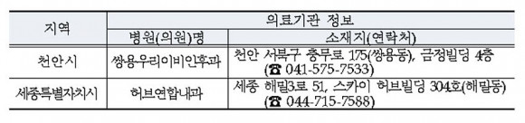 õ¾È¡¤¼¼Á¾Áö¿ª °¢ 1°³¼Ò Ãß°¡, 12¿ù 1ÀϺÎÅÍ Áø·á¼ºñ½º °³½Ã