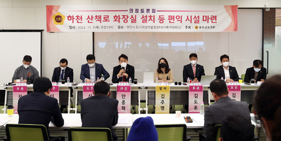 µµÀÇȸ´Â ¾ÈÁ¾Çõ ÀÇ¿ø(õ¾È3¡¤±¹¹ÎÀÇÈû)ÀÇ ¿äûÀ¸·Î 11¿ù 3ÀÏ Ãµ¾È½Ã µµ½ÃÀç»ý¾î¿ï¸²¼¾ÅÍ ´Ù¸ñÀûȸÀǽǿ¡¼ ¡®ÇÏõ »êÃ¥·Î ÈÀå½Ç ¼³Ä¡ µî ÆíÀÍ ½Ã¼³ ¸¶·Ã¡¯À» ÁÖÁ¦·Î ÀÇÁ¤Åä·Ðȸ¸¦ ÁøÇàÇß´Ù.