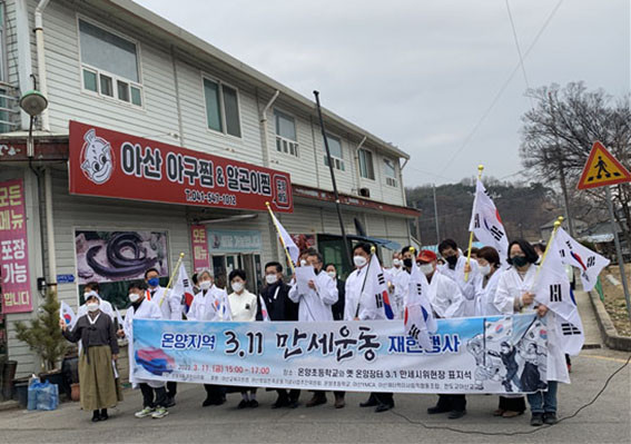 ¿ì¼± ÇÊÀÚ°¡ ¿Â¾çÃÊ Çлýµé¿¡°Ô °ü·Ã ³»¿ëÀ» °£·«È÷ ¼³¸íÇÏ´Â ÇüÅÂÀÇ ¼ö¾÷ÀÌ ÁøÇàµÇ¾ú´Ù. ´ç½Ã ¼±¹èµéÀÌ ÆîÃÆ´ø ¸¸¼¼½ÃÀ§¿Í ÀÌÈÄ ¿Â¾çÀåÅÍÀÇ ¸¸¼¼¿îµ¿, ¾Æ»ê½Ã Áö¿ª 3.1¿îµ¿ÀÇ ÀüüÀû Ư¡, ±×¸®°í Áö±Ýµµ 3.1¿îµ¿À» ±â³äÇØ¾ß ÇÏ´Â ÀÌÀ¯ µîÀ» À̾߱âÇß´Ù. ¿ÀÈÄ 3½Ã 30ºÐºÎÅÍ´Â ¿Â¾ç6µ¿ ÁÖ¹ÎÀÚġȸ°¡ ÁÖ°üÇÏ´Â ±â³äÇà»ç°¡ ¿·È´Ù.