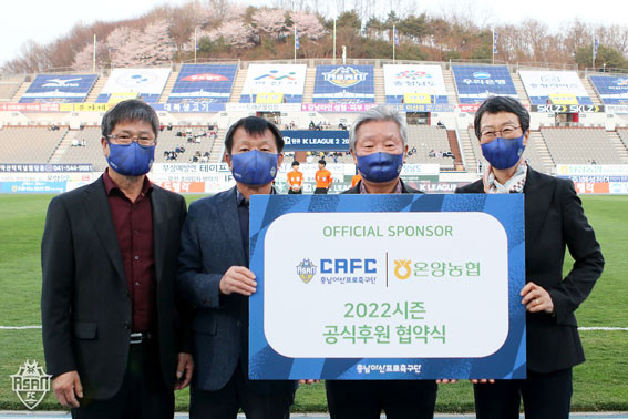 Áö³ 4¿ù 9ÀÏ, Ãæ³²¾Æ»êÇÁ·ÎÃ౸´Ü(±¸´ÜÁÖ ¿À¼¼Çö, ÀÌÇÏ Ãæ³²¾Æ»ê)ÀÌ ¡®Çϳª¿øÅ¥ K¸®±×2 2022¡¯ 10¶ó¿îµå ¾È»ê±×¸®³Ê½ºÀü¿¡ ¾Õ¼ ¿Â¾ç³óÇù(Á¶ÇÕÀå ±èÁؼ®)°ú 2022½ÃÁð ÈÄ¿ø Çù¾à½ÄÀ» ÁøÇàÇß´Ù.