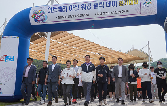 ¡®¾Æ»ê½Ã¹Î °Ç° °È±â Ȱ¼ºÈ¡¯ »ç¾÷ÀÇ Çϳª·Î ½Ã¹Î ¸ðµÎ °È±â¿¡ Èì»¶ ºüÁ® º¸´Â ½Ã°£À» °®ÀÚ´Â Àǹ̷ΠÁøÇàµÈ À̹ø Çà»ç¿¡´Â ¹Ú°æ±Í ¾Æ»ê½ÃÀå°ú ±èÈñ¿µ ¾Æ»ê½ÃÀÇȸ ÀÇÀå, À̸í¼ö¡¤°ÈÆ½Ä ±¹È¸ÀÇ¿ø, ½Ã¡¤µµÀÇ¿ø µîÀÌ Âü¼®ÇØ ÀÚ¸®¸¦ ºû³Â´Ù.
