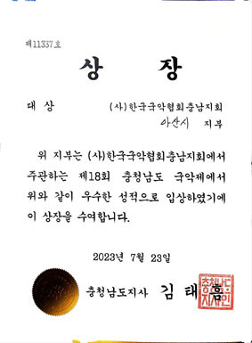 ¾Æ»ê±¹¾ÇÇùȸ Á¦18ȸ Ãæ³²±¹¾ÇÁ¦ ¡®´ë»ó¡¯ ¼ö»ó