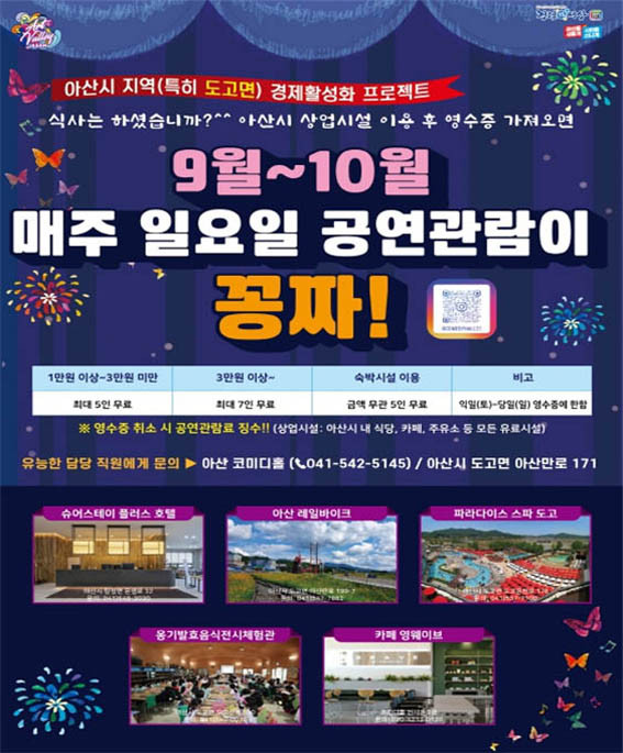 ÇØ´ç ÇÁ·ÎÁ§Æ®´Â Áö¿ªÈ°·ÂÀ» ÅëÇÑ °ü±¤°´ À¯Ä¡¸¦ ¸ñÀûÀ¸·Î Ãæ³²¹®ÈÀç´Ü °ø¸ð»ç¾÷°ú ¿¬°èÇÑ »ó»ý ÇÁ·ÎÁ§Æ®ÀÇ ÀÏȯÀ¸·Î ÁøÇàµÈ´Ù. À̸¦ ÅëÇØ ¾Æ»ê½Ã ¼ÒÀç »ó¾÷½Ã¼³ À̿밴Àº 9~10¿ù ÇѽÃÀûÀ¸·Î Äڹ̵ðȦ °ü¶÷·á(3õ¿ø)¸¦ ³»Áö ¾Ê°í, ¸ÅÁÖ ÀÏ¿äÀÏ °ø¿¬À» ¹«·á·Î Áñ±æ ¼ö ÀÖ´Ù.