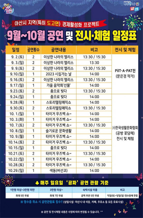 9~10¿ù ¸ÅÁÖ ÀÏ¿äÀÏ ¹«·á °ø¿¬À¸·Î Áö¿ª°æÁ¦ Ȱ¼ºÈ¿¡ ±â¿©