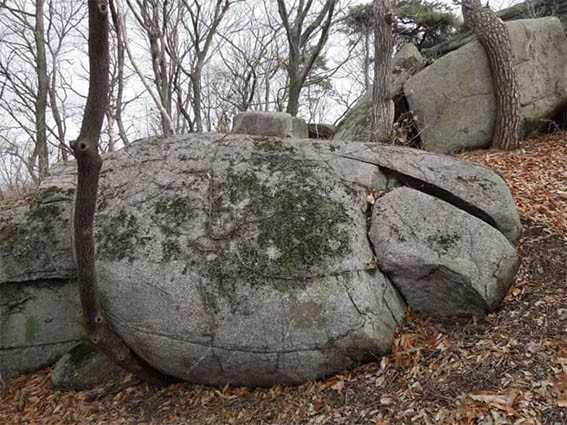 ºÀ°î»ç¸¦ Áö³ª´Â µî»ê·Î¿¡´Â º£Æ²¹ÙÀ§°¡ »ê ÁßÅο¡ ÀÖ´Ù. º£Æ² ¸ð¾çÀ» Çϰí ÀÖ´Ù´Â ÀÌ ¹ÙÀ§´Â µî»ê°´µéÀÇ ´«±æÀ» ²ø°í ÀÖ´Ù. ÀÌ ¹ÙÀ§¿¡ °üÇÑ ½½Ç Àü¼³ÀÌ ¼Û¾Ç¸é À¯°î¸®¿¡¼ ÀüÇÑ´Ù.