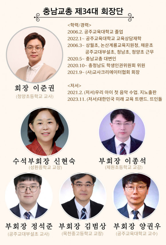 ÀÌÁØ±Ç ´ç¼±ÀÎÀº Àü ȸ¿ø Á÷¼±À¸·Î ÁøÇàµÈ Á¦34´ë Ãæ³²±³ÃÑ È¸Àå´Ü¼±°Å¿¡¼ Áö³ 1¿ù 22ÀÏ ´Üµ¶Èĺ¸ Ã⸶·Î ȸÀå¿¡ ¹«ÅõÇ¥ ´ç¼±µÆ°í, ·¯´×¸ÞÀÌÆ®·Î µ¿¹Ý Ãâ¸¶ÇØ ´ç¼±µÈ ºÎȸÀåÀº ¡ã½ÅÇö¼÷ ¼ºÈ¯Áß ±³Àå(¼ö¼®ºÎȸÀå) ¡ãÀÌÁ¾¼® Á¦¿øÃÊ ±³°¨ ¡ãÁ¤¼®ÁØ °øÁÖ±³´ëºÎ¼³ÃÊ ±³»ç ¡ã±è¹ü»ó ¸ñõ°í ±³Àå ¡ã¾ç±Ç¿ì °øÁÖ±³´ë ±³¼ö´Ù.