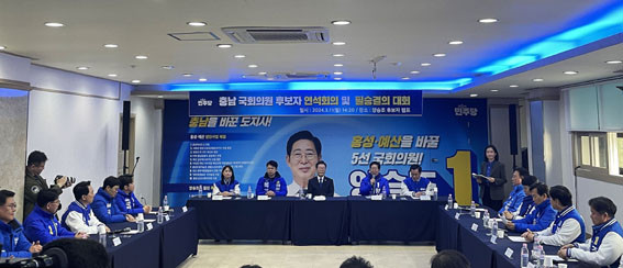 õ¾È¿¡¼ ÁøÇàµÈ Ãæ³² Á¤Ã¥°£´ãȸ¿¡´Â ÀÌÀç¸í ´ëÇ¥¿Í ´õºÒ¾î¹ÎÁÖ¿¬ÇÕ °øµ¿´ëÇ¥, º¹±â¿Õ Ãæ³²µµ´ç À§¿øÀåÀ» ºñ·ÔÇØ õ¾È, ¾Æ»ê, ³í»ê°è·æ±Ý»ê Áö¿ªÀ§¿øÀå µîÀÌ Âü¼®ÇÑ °¡¿îµ¥ ÁøÇàÀÌ µÆ´Ù.
