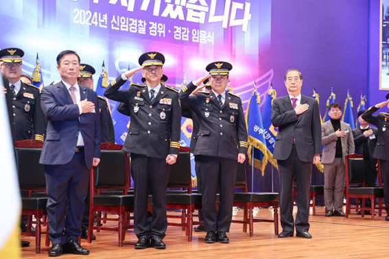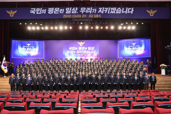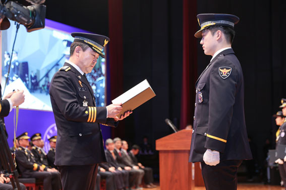 À̳¯ ÀÓ¿ë½Ä¿¡¼ ´ëÅë·É»óÀ» ¹ÞÀº ¼ºÀû ÃÖ¿ì¼öÀÚÀÎ °æÂû´ëÇÐ ÃÖ´Ü¿µ °æÀ§(¿©, ¸¸22¼¼)¿Í °æÀ§°øÃ¤ÀÚ Á¶¼º°ï °æÀ§(³², ¸¸29¼¼)´Â °¢°¢ ¡°±¹¹Î¿¡°Ô ²À ÇÊ¿äÇÑ °æÂûÀÌ µÇ±â À§ÇØ Ç×»ó °í¹ÎÇϰڴÙ.¡±, ¡°ºÒÀÇ¿Í ¹üÁ˸¦ ô°áÇÏ°í ±¹¹ÎÀ» º¸È£Çϴ ȣ±¹°æÂûÀÌ µÇ¾î, ¸ðµç ±¹¹ÎÀÌ ¾È½ÉÇÒ ¼ö ÀÖ´Â ´ëÇѹα¹À» ¸¸µå´Â ÀÏ¿¡ ÀÏÁ¶ÇϰڴÙ.¡±¶ó°í ¼Ò°¨À» ¹àÇû´Ù.