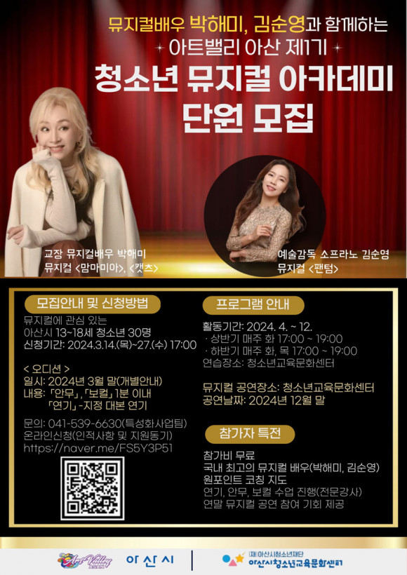 Âü°¡ ½ÅûÀº È«º¸ Æ÷½ºÅÍ ³» QR ÄÚµå ȤÀº ¸µÅ© Á¢¼ÓÀ» ÅëÇØ °¡´ÉÇϸç, ½ÅûÀÚ´Â ÃßÈÄ ¿ÀÇÁ¶óÀÎ ¿Àµð¼ÇÀ» °ÅÃÄ ´Ü¿øÀ¸·Î ÃÖÁ¾ ¼±¹ßµÈ´Ù. ÀÚ¼¼ÇÑ »çÇ×Àº ¾Æ»ê½Ãû¼Ò³â±³À°¹®È¼¾ÅÍ È¨ÆäÀÌÁö(http://www.smartyouth.or.kr) ¸ðÁý ¾È³»¿¡¼ È®ÀÎÇÒ ¼ö ÀÖ´Ù.