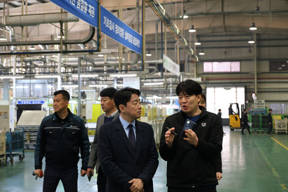 Á¦Á¶ ¶óÀÎÀ» µ¹¾Æº» ° ÀÇ¿øÀº ¡°ÀüÅëÀûÀÎ ÀÚµ¿Â÷ ºÎǰ»Ó ¾Æ´Ï¶ó »õ·Î¿î ±â¼ú·ÂÀ» ¹ÙÅÁÀ¸·Î ȯ°æ±ÔÁ¦¿¡ ¹ß¸ÂÃá ºÎǰÀ¸·Î »ç¾÷ ¿µ¿ªÀ» È®´ëÇÏ·Á´Â °ÍÀÌ ÀλóÀûÀ̾ú´Ù¡±°í ÇÑ µÚ, ¡°21´ë ±¹È¸°¡ ¾ó¸¶ ³²Áö ¾Ê¾ÒÁö¸¸, °æ¿µÈ¯°æ º¯È¿¡ ÀûÀÀÇÏ´Â Áß¼Ò±â¾÷À» µ½´Â ¹ý¾ÈÀÌ ¹Ýµå½Ã Åë°úµÇ±â¸¦ ¹Ù¶õ´Ù¡±°í ¹Ù¶÷À» ÀüÇß´Ù.