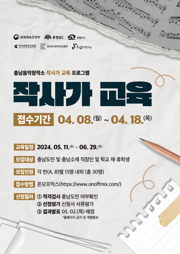 Ãæ³²Á¤º¸¹®È»ê¾÷ÁøÈï¿øÀº Áö¿ª ´ëÁßÀ½¾Ç»ê¾÷ Ȱ¼ºÈ¸¦ ¸ñÀûÀ¸·Î ¡®Àۻ簡 ±³À° ÇÁ·Î±×·¥¡¯À» º»°Ý ¿î¿µÇϱâ À§ÇÑ Àۻ簡 ¸ðÁýÀ» ¿À´Â 4¿ù 8ÀϺÎÅÍ ÃßÁø ÇÑ´Ù°í ¹àÇû´Ù.