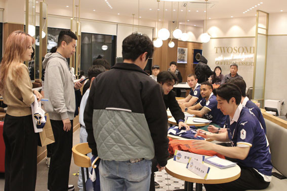À̳¯ ÆÒ»çÀÎȸ ÇöÀå¿¡´Â ÁÖÀå ¹Ú¼¼Á÷À» ºñ·ÔÇØ Á¤¸¶È£, Áִ׿ä, ´©³×Áî ¼±¼ö°¡ ÇÔ²²Çß´Ù. ¼±¼öµéÀº ã¾Æ¿Í ÁØ ÆÒµéÀ» À§ÇØ ÇÑ ¸í ÇÑ ¸í Á¤¼ºÀ» ´ÙÇØ Á÷Á¢ »çÀÎÀ» Àü´ÞÇÏ°í ¼ÒÅëÇϸç Áñ°Å¿î ½Ã°£À» º¸³Â´Ù.