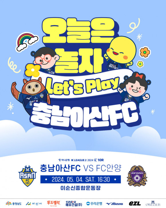 Ãæ³²¾Æ»êÇÁ·ÎÃ౸´Ü(±¸´ÜÁÖ ¹Ú°æ±Í, ´ëÇ¥ÀÌ»ç ÀÌÁØÀÏ, ÀÌÇÏ Ãæ³²¾Æ»ê)Àº ¿À´Â 4ÀÏ ¿ÀÈÄ 4½Ã 30ºÐ À̼ø½ÅÁ¾ÇտÀå¿¡¼ FC¾È¾ç(ÀÌÇÏ ¾È¾ç)°ú ¡®ÇϳªÀºÇà K¸®±×2 2024¡¯ 10¶ó¿îµå¸¦ Ä¡¸¥´Ù.