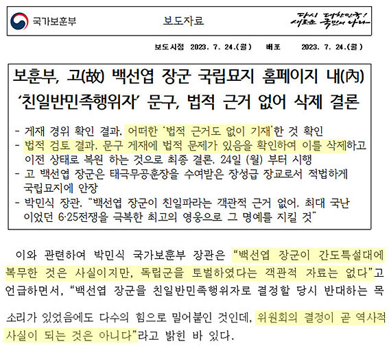 ¹é¼±¿± À屺ÀÇ Ä£ÀÏÇàÀûÀ» »èÁ¦Çß´Ù´Â º¸ÈƺÎÀÇ º¸µµÀÚ·á°¡ ¹ßÇ¥µÈ ÀÌÈÄ ±è¹éÀÏ, ÀÌÁ¾Âù, ÀÌÀÀÁØ À屺ÀÇ À¯Á·µéµµ Ä£ÀÏ ÀÌ·ÂÀ» »èÁ¦ÇØ´Þ¶ó´Â ¹Î¿øÀ» º¸Èƺο¡ º¸³½ °ÍÀ¸·Î ¾Ë·ÁÁ³´Ù.
