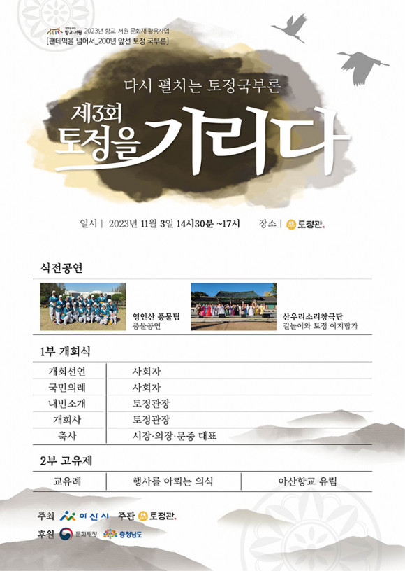 ÆÒµ¥¹ÍÀ» ³Ñ¾î¼~ 200³â ¾Õ¼± ÅäÁ¤ ±¹ºÎ·Ð »ç¾÷ÀÇ ÇϳªÀÎ ´Ù½Ã ÆîÄ¡´Â ÅäÁ¤ ±¹ºÎ·ÐÀ̶õ À̸§À¸·Î ¡®Á¦3ȸ ÅäÁ¤À» ±â¸®´Ù.¡¯ Çà»ç´Â 11¿ù 3ÀÏ ±Ý¿äÀÏ ¿ÀÈÄ 2½Ã 30ºÐºÎÅÍ 5½Ã±îÁö ÅäÁ¤°ü ¾ß¿Ü¹«´ë¿¡¼ ¿¸®¸ç ¸¸¾à ºñ°¡ ¿Ã ¶§´Â ½Ç³» Çà»ç·Î ´ëüÇÑ´Ù.