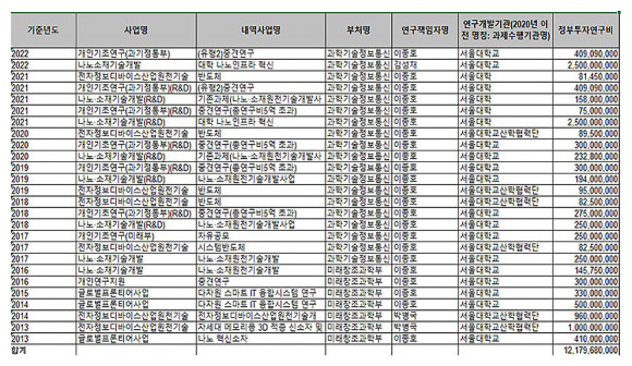 Áö³ 10³â°£ °ú±âºÎ¿¡¼ 121¾ï¿ø, »êÀںο¡¼ 5¾ï ³Ñ°Ô ¿¬±¸ºñ ¹Þ¾Æ