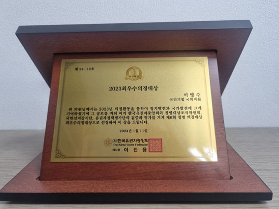À̸í¼ö ÀÇ¿ø, ¡®2023 ÃÖ¿ì¼öÀÇÁ¤´ë»ó¡¯ ¼ö»ó