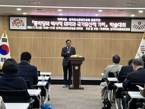 Çѱ¹ À¯±³¹®È¿Í ÃæÃ»Áö¿ª ±¹ÇÐ ´ëÇ¥ ¿¬±¸±â°üÀÎ ÇÑÀ¯ÁøÀº ¼±ºñ¹®ÈÀÇ Ã¢´Þ°ú ±âÈ£À¯ÇÐ Á¤¸³¿¡ ±â¿©ÇϰíÀÚ ¼³¸³µÈ ¹é·ÏÇÐȸ¿Í ÇÔ²² Á¾ÇдçÀÇ ¿ª»çÀû Àǹ̸¦ »ìÆìº¸°í, ±¹°¡À¯»êÀû °¡Ä¡¸¦ ¹ß±¼ÇÏ´Â Çмú´ëȸ¸¦ °øµ¿À¸·Î ±âȹ, °³ÃÖÇß´Ù.