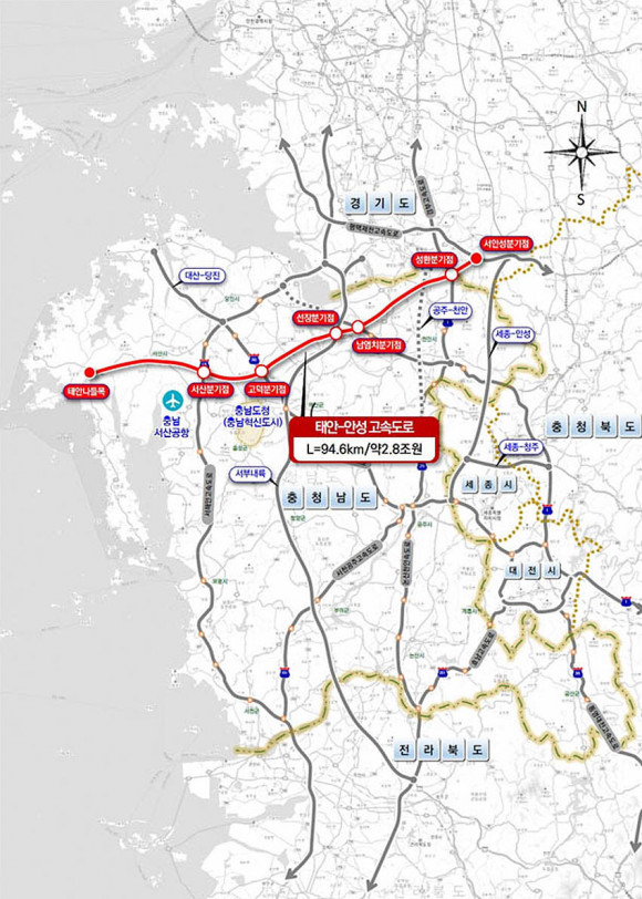 µµ³»¿¡¼ À¯ÀÏÇÏ°Ô °í¼Óµµ·Î°¡ ¾ø´Â ÅÂ¾È Áö¿ª¿¡ ±¤¿ª ±³Åë¸ÁÀ» ¿¬°áÇØ Á¢±Ù¼ºÀ» ȹ±âÀûÀ¸·Î °³¼±Çϰí, 2°³ µµ 7°³ ½Ã±º, 6°³ °í¼Óµµ·Î¸¦ ¿¬°áÇÔÀ¸·Î½á Ãæ³² ¼ÇؾȰú ³»·ú, ¼öµµ±Ç °£ ±³ÅëÀÌ Å©°Ô Çâ»óµÉ °ÍÀ¸·Î Àü¸ÁµÈ´Ù.