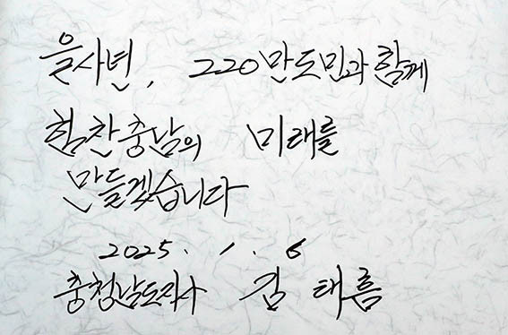 ±è Áö»ç´Â ¹æ¸í·Ï¿¡ ¡°À»»ç³â, 220¸¸ µµ¹Î°ú ÇÔ²² ÈûÂ÷°Ô µµ¾àÇÏ´Â Ãæ³²ÀÇ ¹Ì·¡¸¦ ¸¸µé¾î °¡°Ú´Ù¡±°í Àû¾ú´Ù.