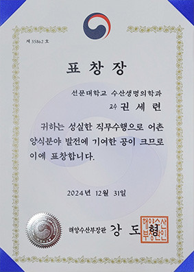 À̹ø ǥâ ¼ö»óÀº ¼±¹®´ëÇб³°¡ ÇØ¾ç¼ö»ê¾÷ ¹ßÀüÀ» À§ÇÑ ¿¬±¸¿Í ±³À°¿¡ Àû±ØÀûÀ¸·Î ±â¿©Çϰí ÀÖÀ½À» º¸¿©ÁÖ´Â »ç·Ê·Î Æò°¡¹Þ°í ÀÖ´Ù.