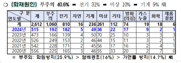 ±Ç º»ºÎÀåÀº ¶Ç ¡°»ç»óÀÚ Áß¿¡´Â °Åµ¿ÀÌ ºÒÆíÇÑ ºÐµéÀÌ ¸¹¾Ò°í, ÃÖ±Ù 2³â °£ Ãë¾à ÁÖ°ÅÁöÀÎ ±âŸÁÖÅà ÈÀç »ç¸ÁÀÚ°¡ ¾ÐµµÀûÀ¸·Î ¸¹¾Ò´Ù¡±¸ç, ÁÖÅà ÈÀç ¿¹¹æÀ» À§ÇØ ¡âÀü±â ÄÚµå Á¡°Ë ¹× ³°°Å³ª ¼Õ»óµÈ ÄÚµå ±³Ã¼ ¡â»ç¿ëÇÏÁö ¾Ê´Â ÀüÀÚ±â±âÀÇ Ç÷¯±× »Ì±â ¡â°¡½º¹ëºê »ç¿ë ÈÄ Àá±×±â ¡âÀ½½Ä Á¶¸® Áß ÀÚ¸® ºñ¿ìÁö ¾Ê±â ¡â°¡½º·¹ÀÎÁö ¹× Àδö¼Ç ±Ùó °¡¿¬¼º ¹°Áú µÎÁö ¾Ê±â ¡âÆ¢±è ¿ä¸® ½Ã °ú¿µÇÁö ¾Êµµ·Ï ÁÖÀÇ Çϱ⠡â¼Òȱâ ÁÖ¹æ ºñÄ¡ ¹× »ç¿ë¹ý ¼÷Áö ¡âÀü±âÈ÷ÅÍ¡¤¿Â¿±â±¸ °¡¿¬¼º ¹°Áú°ú °Å¸® µÎ±â ¡âÃåºÒ »ç¿ë ½Ã ÁÖº¯ Á¤¸® ¹× Ãëħ ½Ã ¹Ýµå½Ã ²ô±â ¡â¹æ ¹× °Å½Ç, Áֹ濡 ÈÀç °¨Áö±â ¼³Ä¡ ¡â½Ç³» Èí¿¬ ±ÝÁö µîÀ» ÁؼöÇϰí, ÈÀç ¹ß»ý ½Ã °¡Á· °£ ºñ»ó ´ëÇÇ °èȹ ¼ö¸³µµ ´çºÎÇß´Ù.