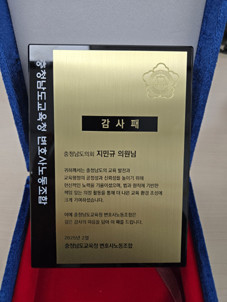 Áö¹Î±Ô ÀÇ¿ø, Ãæ³²±³À°Ã» º¯È£»ç³ëÁ¶ °¨»çÆÐ ¼ö»ó