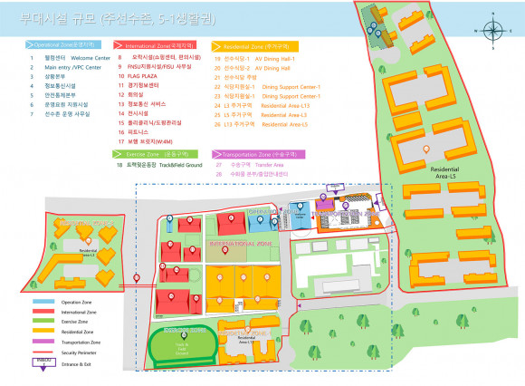 ÁÖ¿ä ±â´É¿î¿µ ±¸¿ªÀ¸·Î ¡ãÁְű¸¿ªÀº ¼÷¼Ò, ´ëÇ¥¼±¼ö´Ü »ç¹«½Ç, Àǹ«½Ç, ¿À¶ô ¹× ½ºÆ÷Ã÷½Ã¼³ µî ¡ã±¹Á¦±¸¿ªÀº Á¾ÇÕÁø·á¼Ò, Ç÷¡±×ÇöóÀÚ, Á¾±³¼¾ÅÍ, ¼±¼öÃÌ ½Ä´ç µî ¡ã¿î¿µ±¸¿ªÀº ȯ¿µ¼¾ÅÍ, °ü¸®¼¾ÅÍ µî ¡ã¼ö¼Û±¸¿ªÀº FISU ¼ö¼ÛÀü¿ëÁö±¸, ´ëÇ¥¼±¼ö´Ü ÁÖÂ÷Àå µî ¡ã¿îµ¿±¸¿ªÀº Á¶±ëÆ®·¢ ¼³Ä¡ µîÀ¸·Î ¹èÄ¡µÈ´Ù.