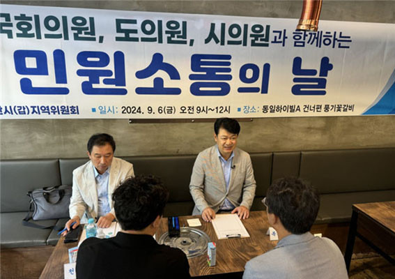 | | ¡è¡è <»çÁøÁ¦°ø=º¹±â¿ÕÀÇ¿ø½Ç> | ¨Ï (ÁÖ)¿Â¾ç½Å¹®»ç | | º¹±â¿Õ ´õºÒ¾î¹ÎÁÖ´ç ±¹È¸ÀÇ¿ø(±¹È¸ ±¹Åä±³ÅëÀ§¿øÈ¸¡¤¾Æ»ê½Ã°©)ÀÌ 9¿ù 6ÀÏ ¾Æ»ê¿¡¼ ¹Î¿ø¼ÒÅëÀÇ ³¯À» °³ÃÖÇØ, ¾Æ»ê½Ã¹Î 50¿© ¸íÀÇ ¹Î¿ø°ú ÀǰßÀ» ûÃëÇß´Ù.